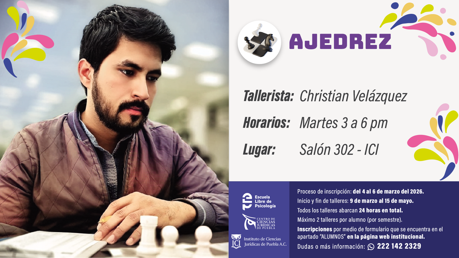 A lo largo de todo el año tenemos varios eventos y talleres enfocados en diversas áreas que ayudan a nuestro alumnado a desarrollar nuevas habilidades y/o pulir nuevas.